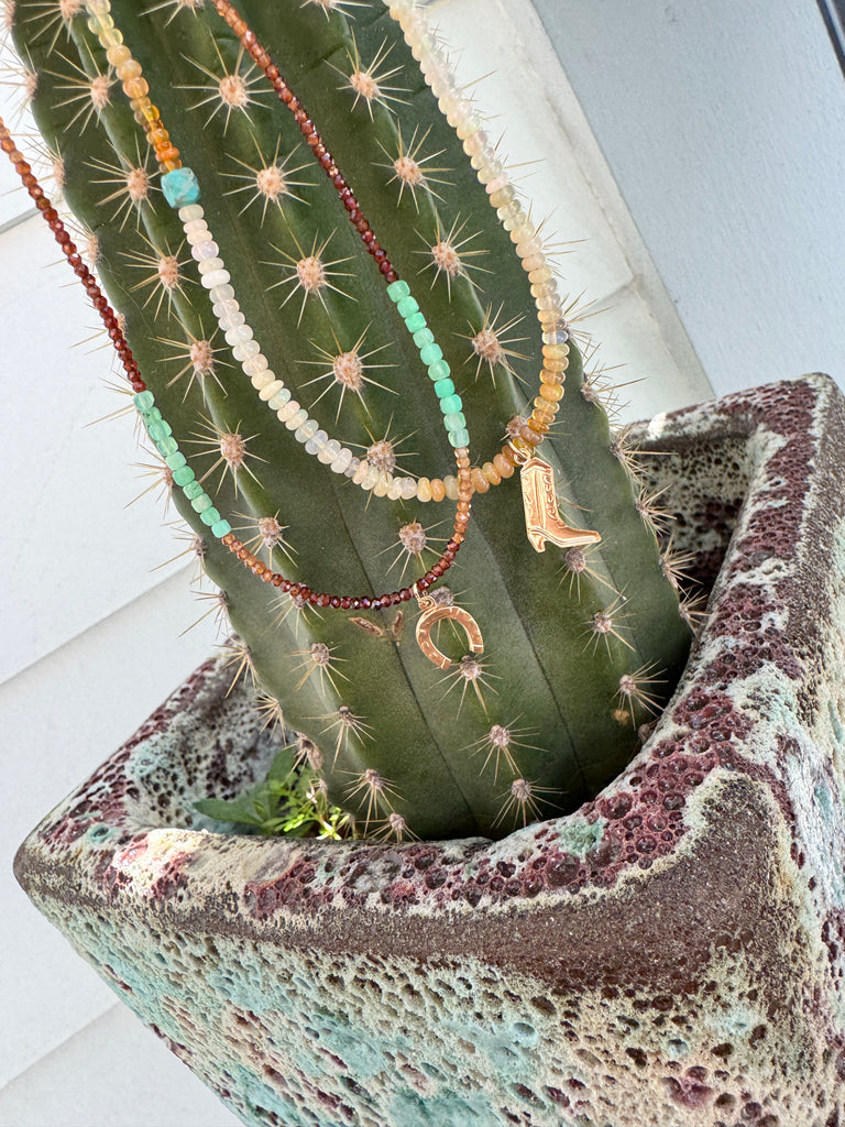tube turquoise with ombré gemstone beads and 14kt yellow gold bead, 15.5 inches