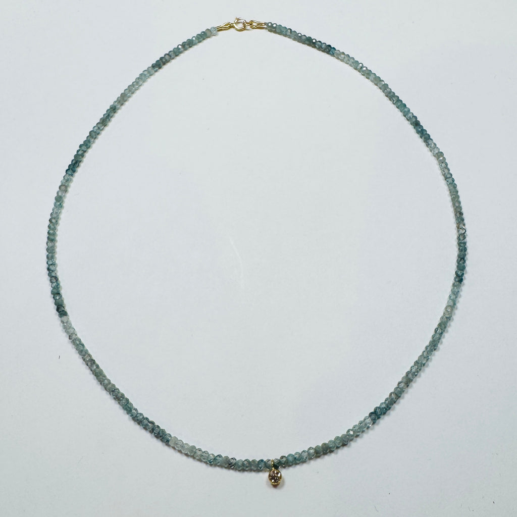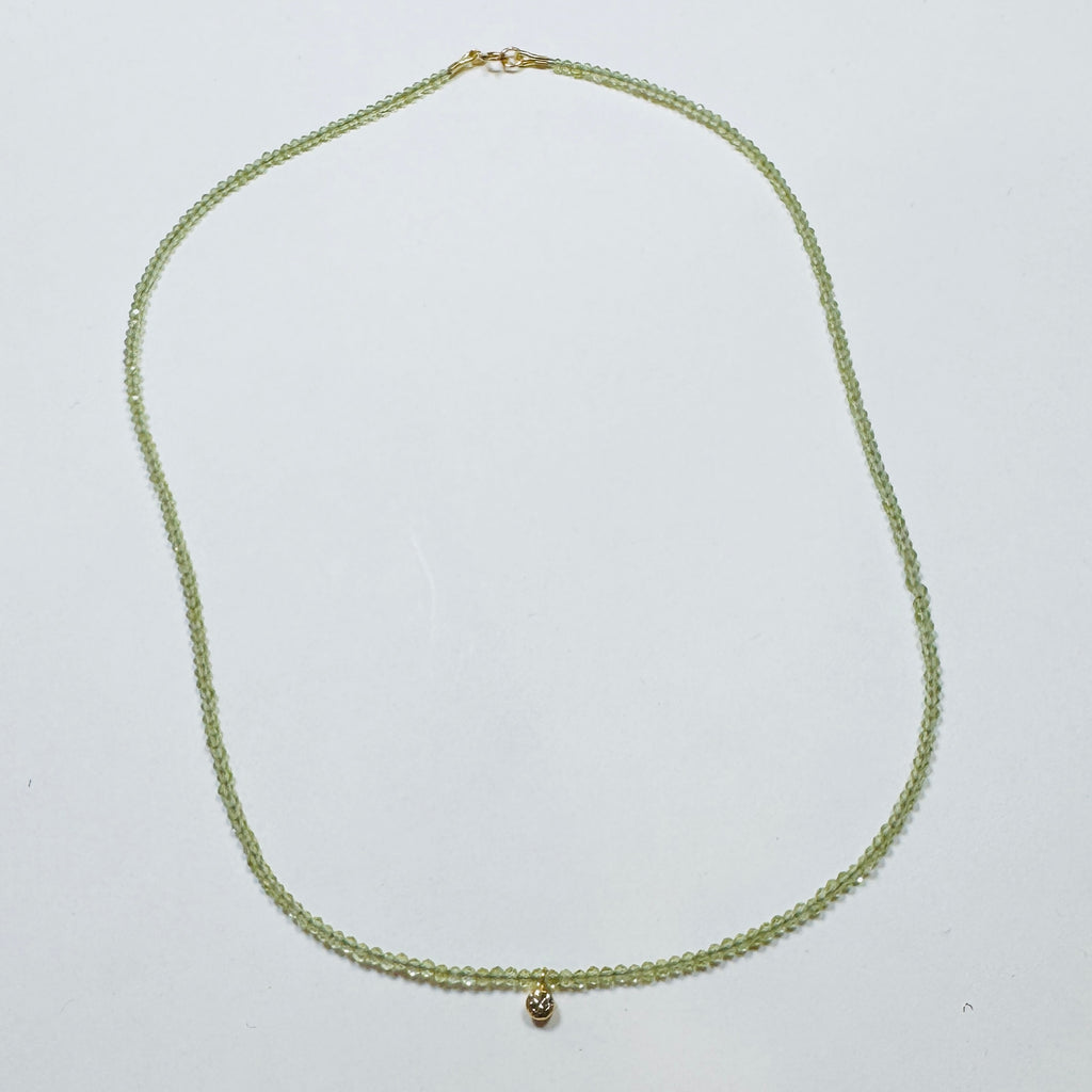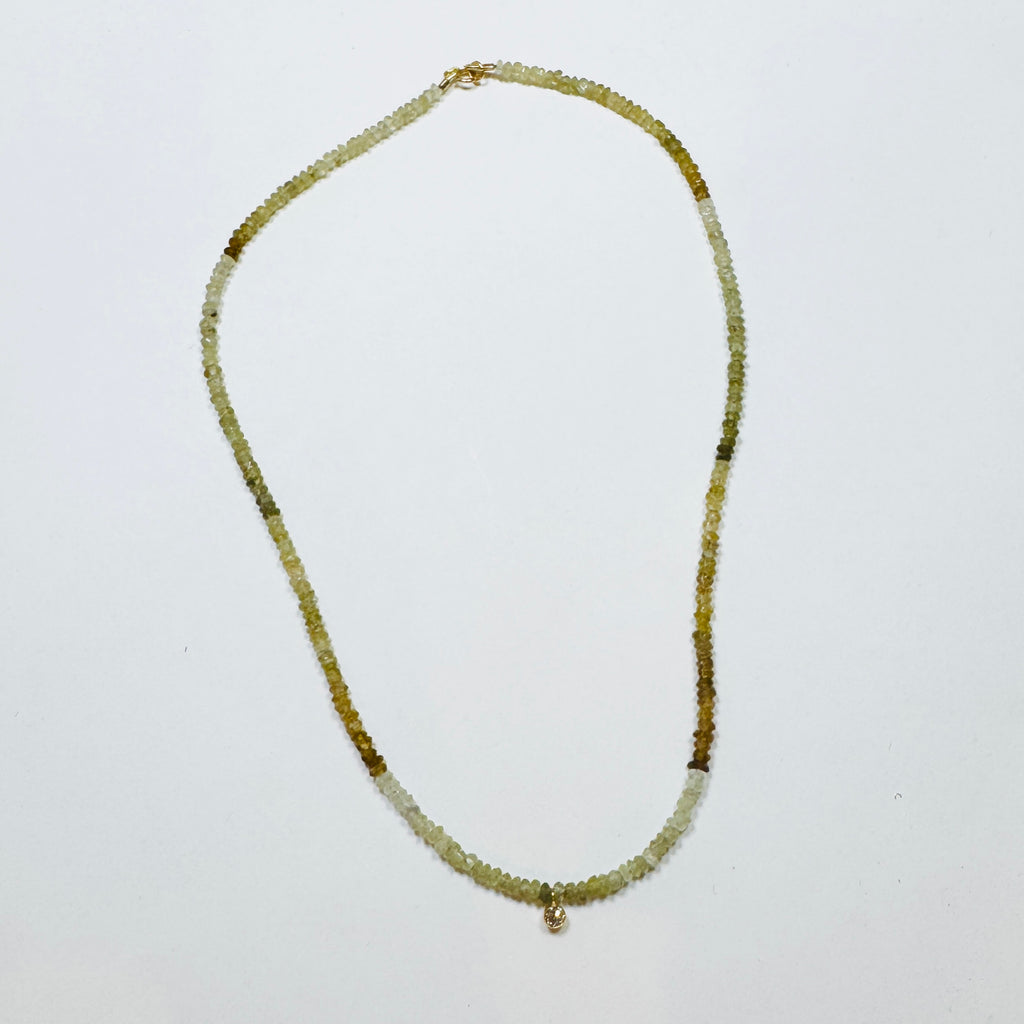tiny faceted gemstones with a 14kt yellow gold bezel set diamond, 15.5 inches