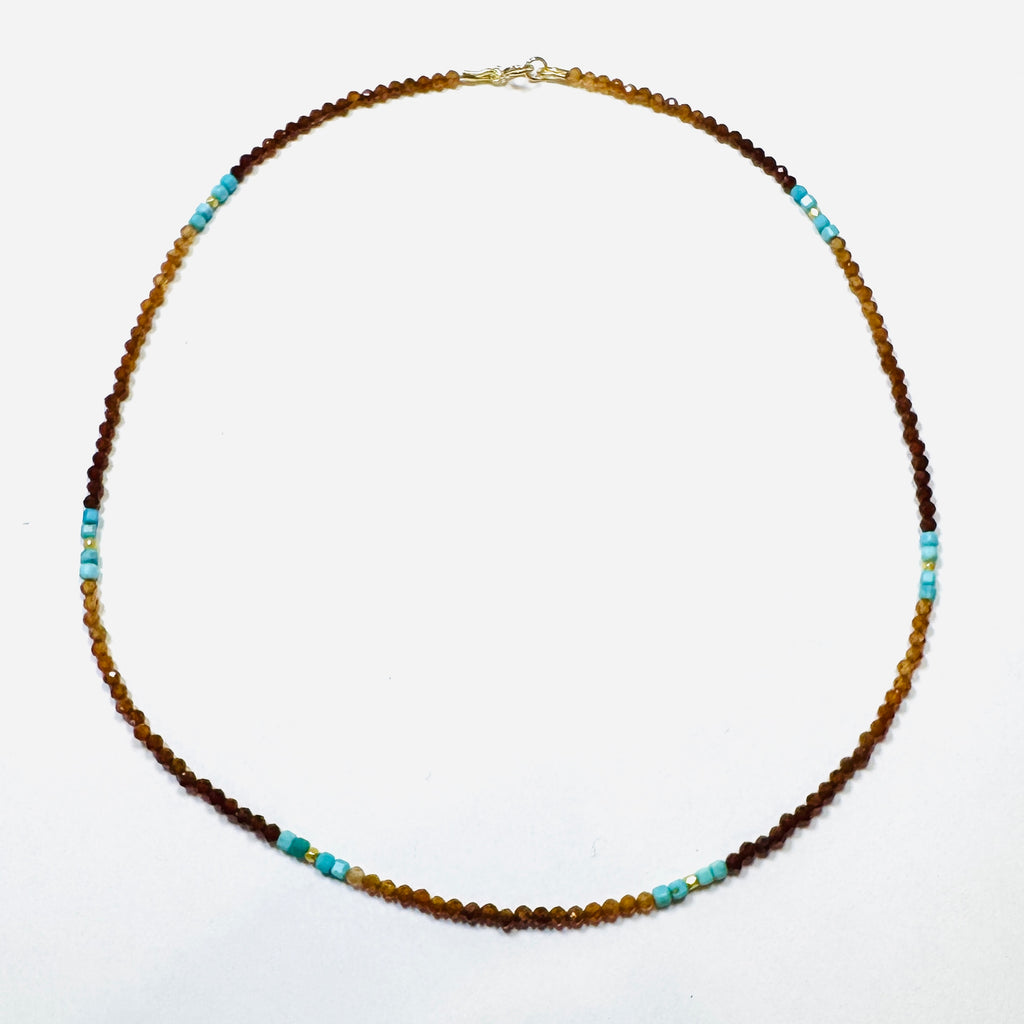 delicate shaded gemstones with cube station color block and 14kt gold beads and clasp 15.5 inches in finished length