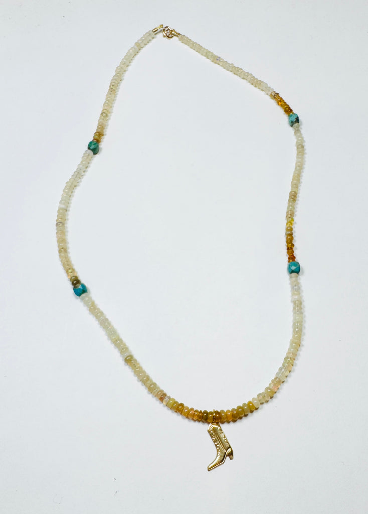 gemstone necklace with a 14kt yellow gold cowboy boot charm, 16 inches