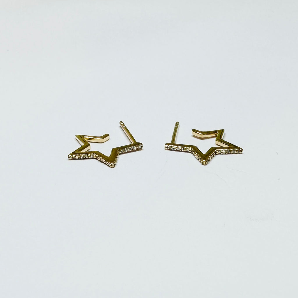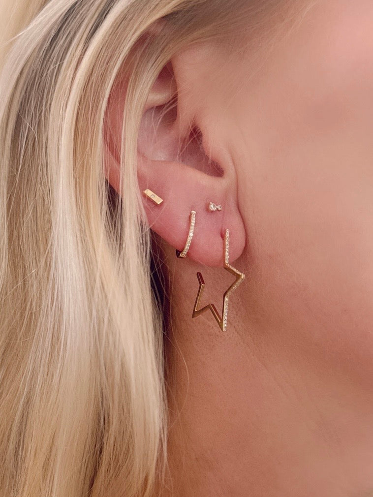 14k gold pavè diamond star huggies